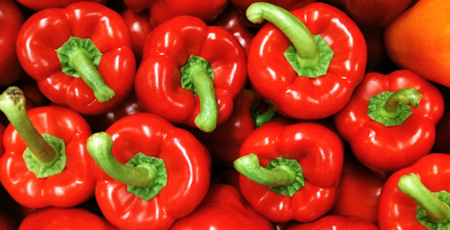 Our first tip is use harmonised colour to add impact. Not only is red a great colour to catch the eye, see how much impact is added by the green stalks set against the red peppers,